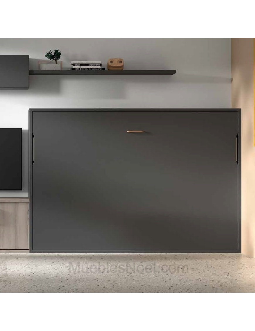 La cama horizontal Chueca con patas automáticas, para colchones de matrimonio 135cm por 190cm de largo mide 211 cm de largo, 42,5 cm de fondo, y con una altura de 153 cm. La cama desplaza a 166 cm, y las patas tienen un alto hasta el somier de 18 cm. Los colores fotografiados son el grafito coordinado con el teja.