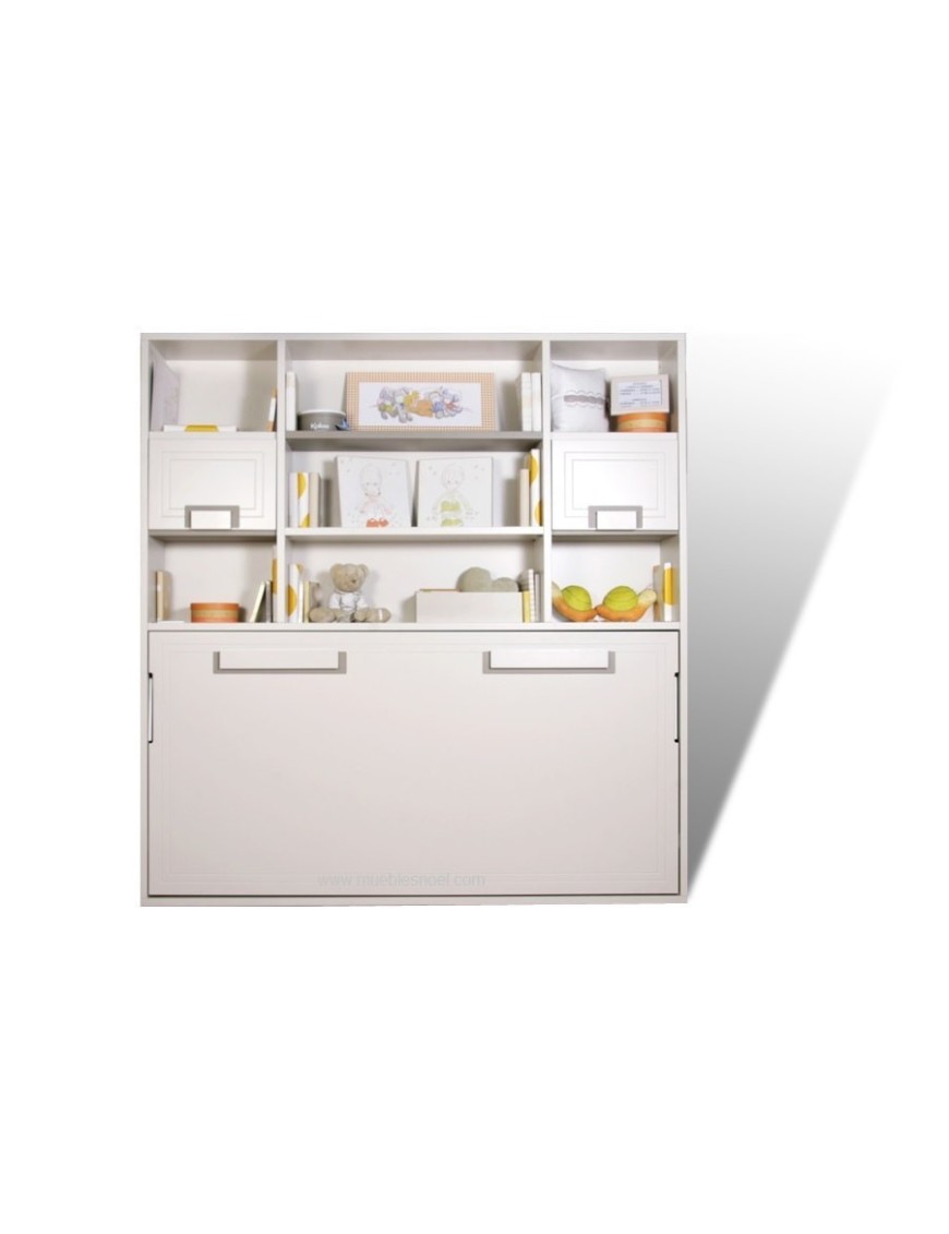 Cama abatible horizontal con librería. Muebles para dormitorios juveniles en Madrid. Habitación juvenil lacada en blanco.