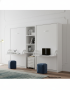 Cama abatible vertical para 105 con una mesa de estudio que se esconde cuando abres la cama. Está fotografiada para colchón de 105x190x20cm, ocupando un espacio de 123cm de ancho, alto de 212cm y soló una profundidad de 34,5cm. Abierta mide 211cm desde la pared hasta los pies.
