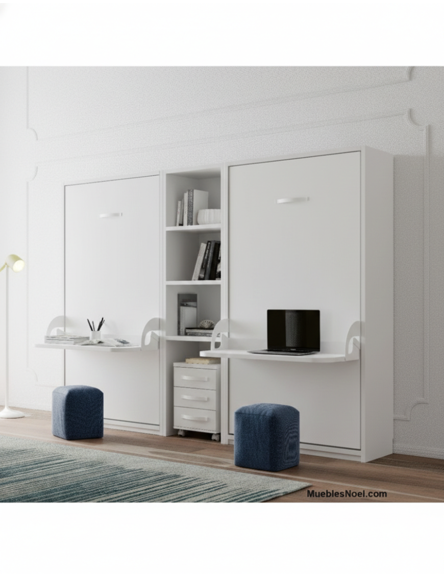 El precio corresponde a un conjunto para dormitorio compuesto por una cama abatible vertical con mesa sincronizada, modelo Dálmata, apropiado para dormitorios de estudiantes y/o habitación alargada con poco espacio.