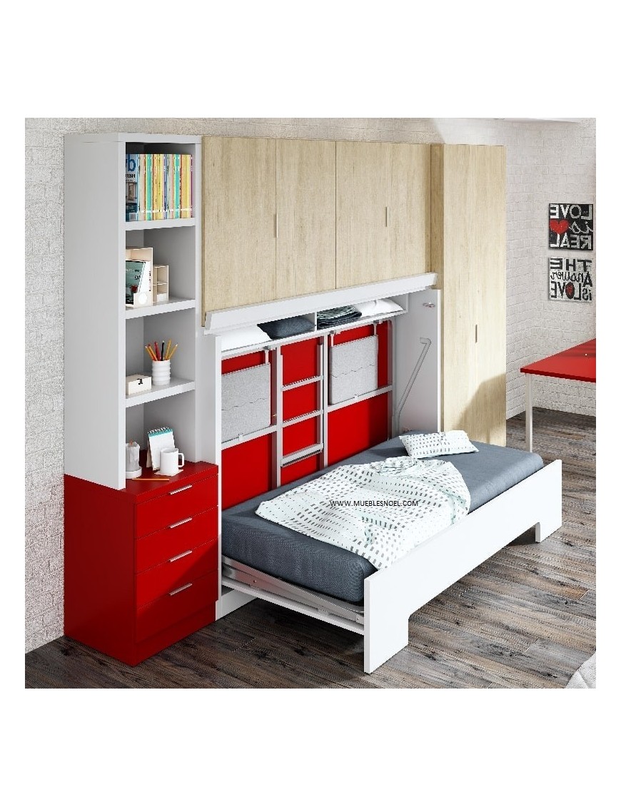 El resto de los muebles que se ven en algunas de las fotos no están incluidos en el precio ni en las medidas de la cama litera plegable para paredes de Pladur.