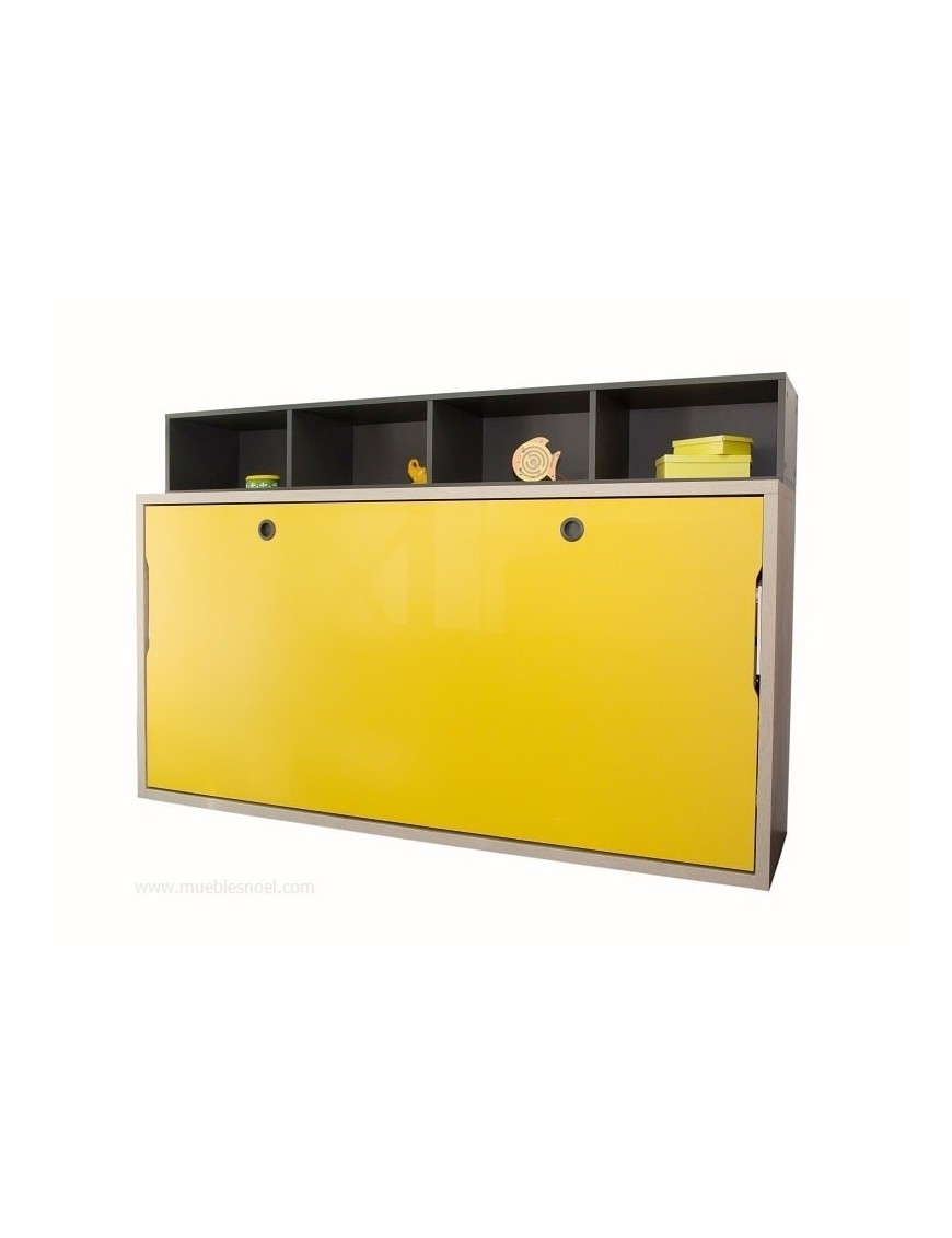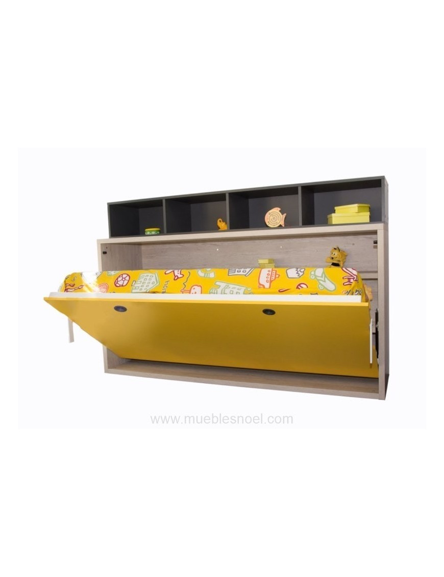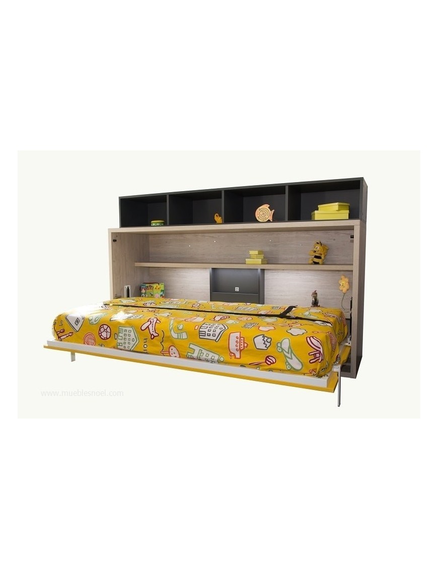 Cama abatible horizontal Madrid para colchones de 90 x 180 cm. estantes internos y externos, patas automáticas por gravedad.