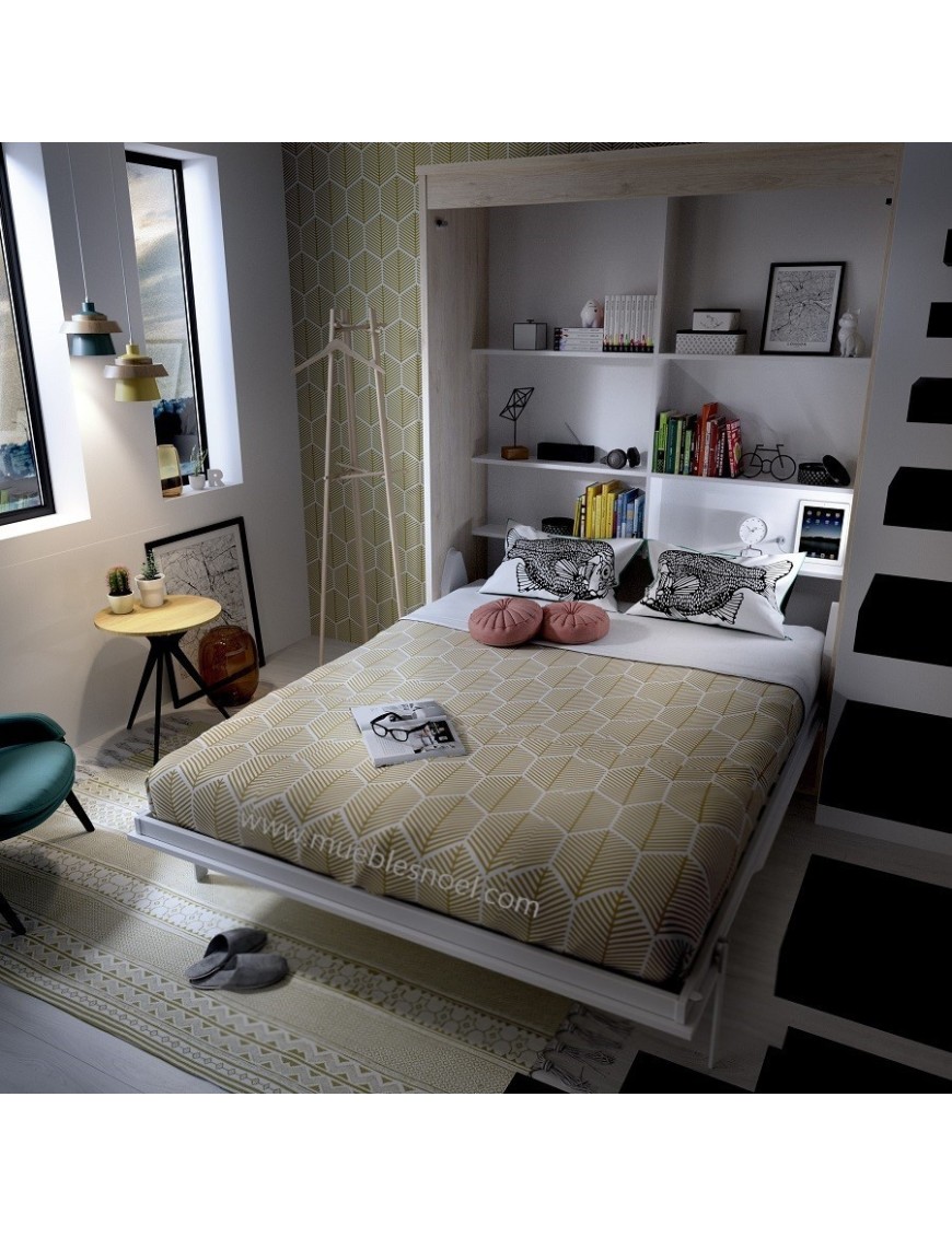 A la cama doble abatible se le puede poner una librería interna incorporada, no incluida en el precio, si la compramos con fondo de 56cm.