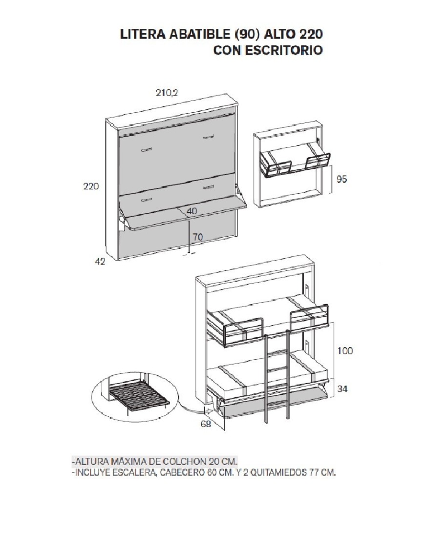 La mesa escritorio está sincronizada, según se abre la cama el escritorio queda debajo, la dimensión del escritorio es de 40 cm.
