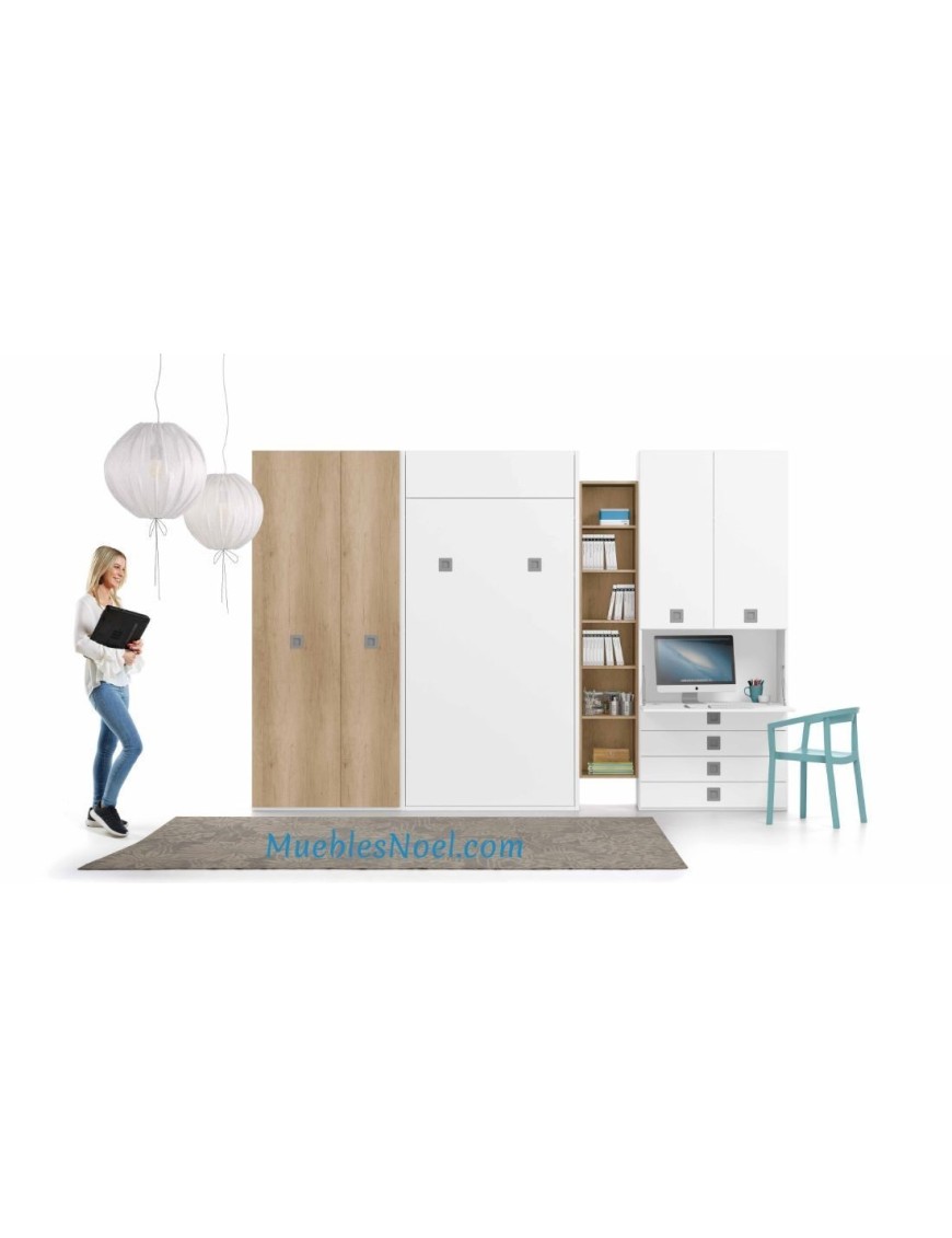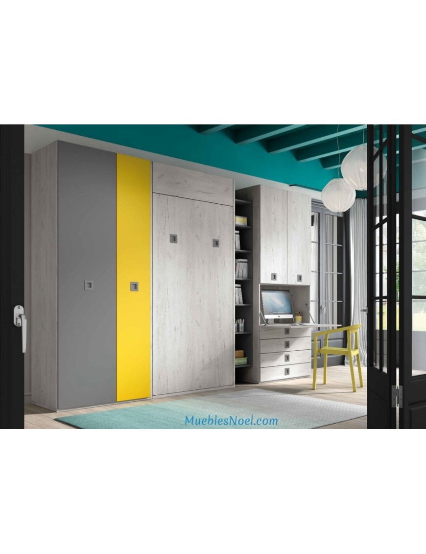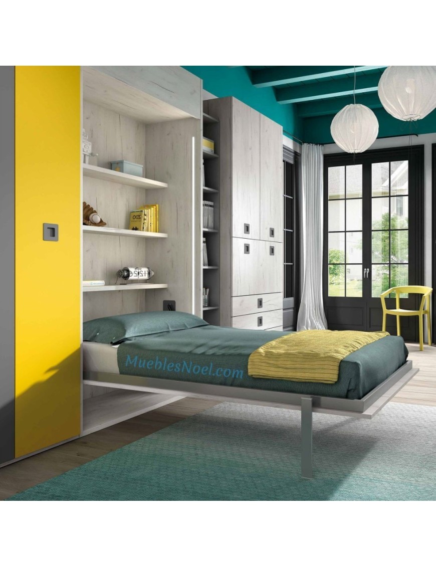 Cama abatible vertical Vicálvaro con somier 105x190cm. Mide 242x122x58cm, abierta 233cm.