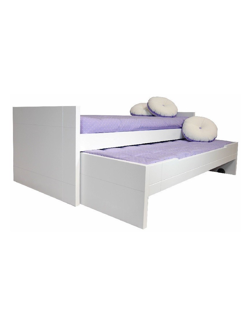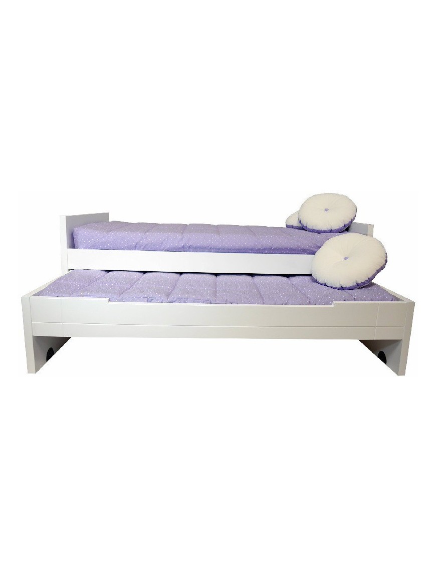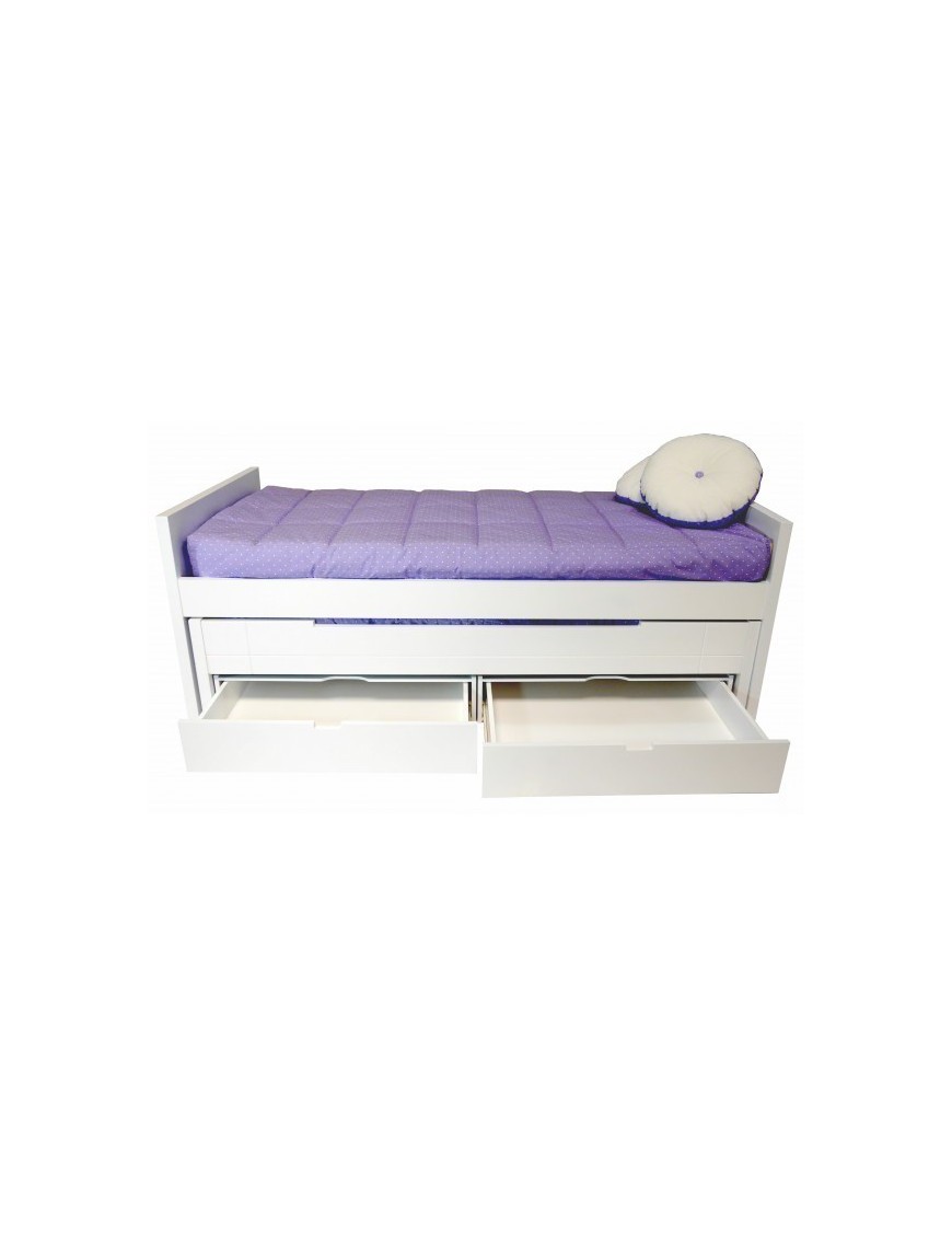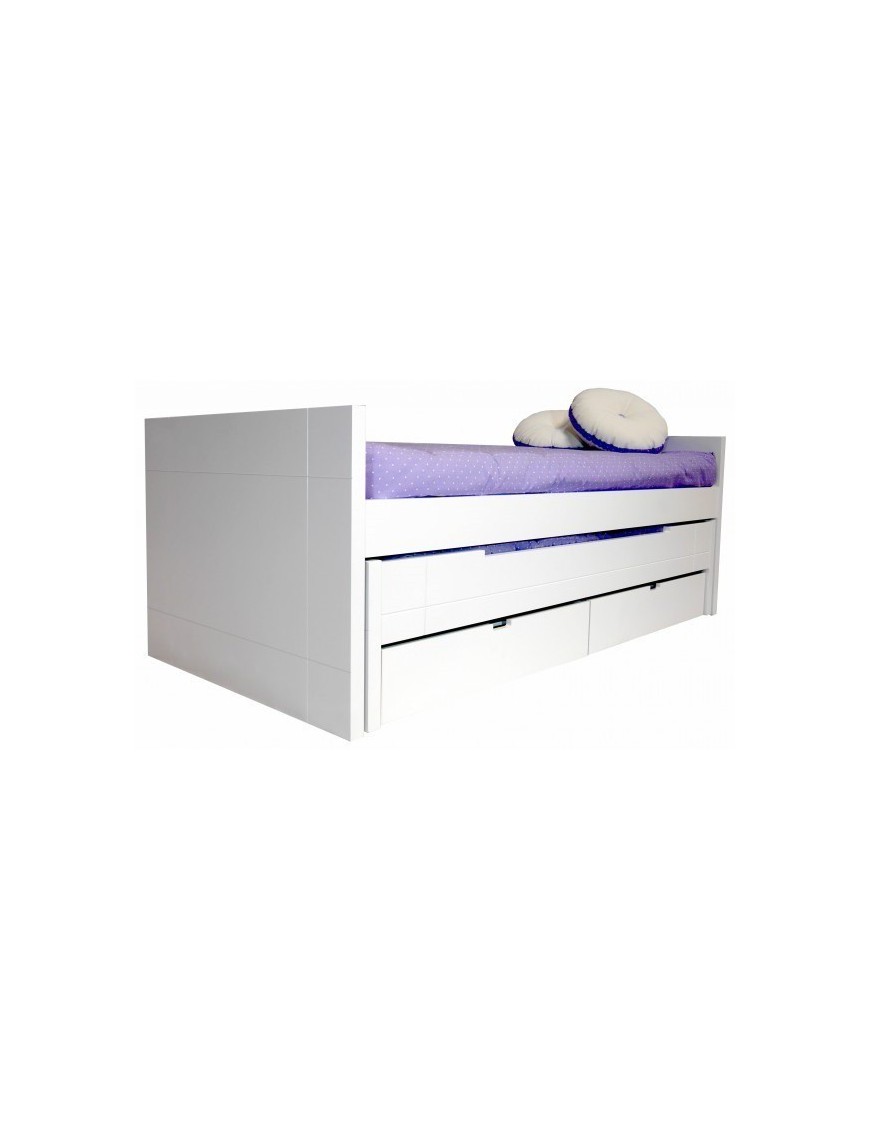 Cama nido lacada compacta baja con dos camas y cajones. Cama compacta juvenil maciza de dm lacado barata.
