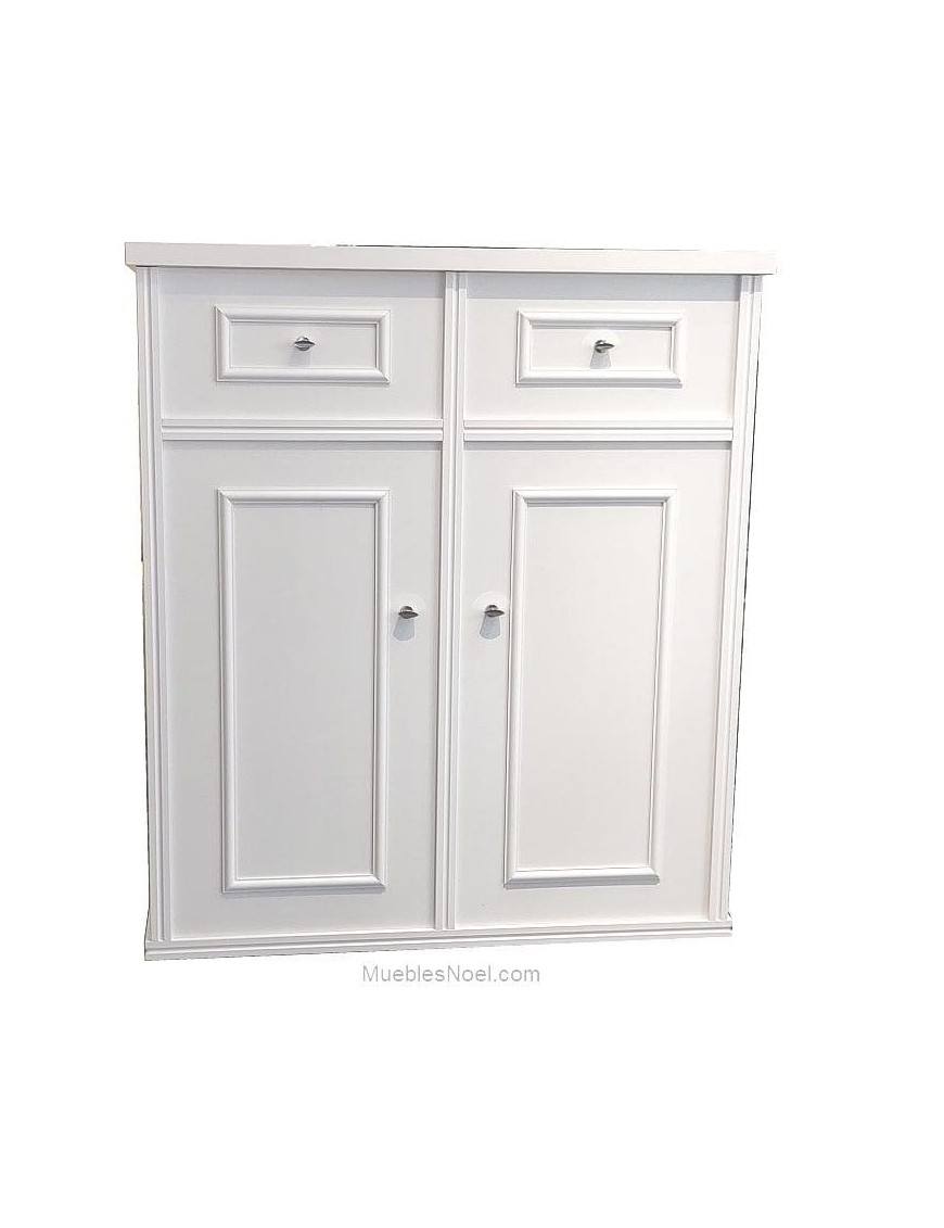 Frente con molduras que simulan cajones y puertas.