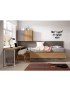 Descubre el conjunto de muebles juveniles, Recoletos, que fusionan a la perfección estilo moderno y funcionalidad. La cama nido, con un cabecero en tono neutro y una estructura robusta en madera clara, integra cajones inferiores para optimizar el espacio de almacenamiento. A su lado, una mesa de escritorio con ruedas, destaca por su diseño giratorio. Su funcionalidad permite adaptarla fácilmente a diferentes configuraciones, ideal para espacios reducidos o para colocarla frente a un balcón y disfrutar de la luz natural mientras estudias. Completa el conjunto un armario colgante de dos módulos, combinando acabados en gris y madera, que aporta un toque de sofisticación y ofrece un espacio adicional para guardar objetos personales.